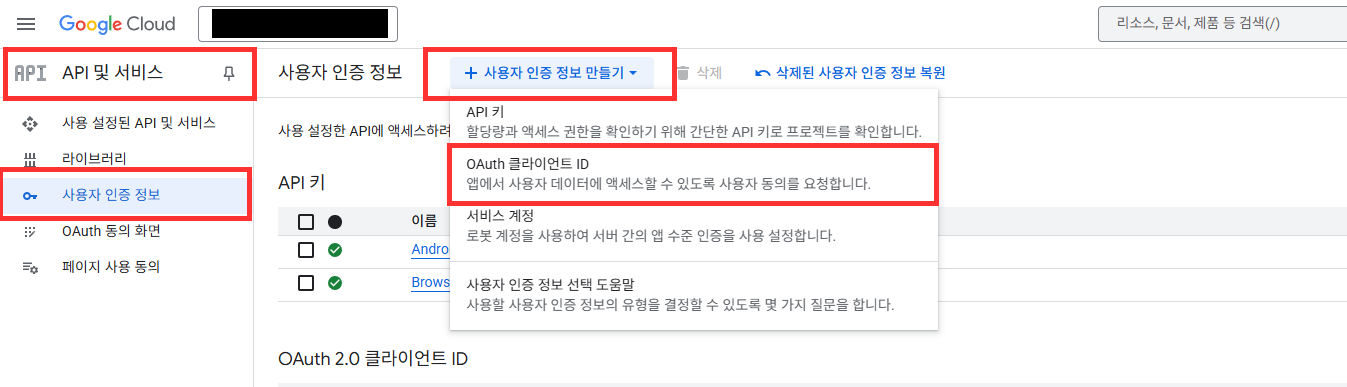 - 选择 Google Cloud Platform > 凭据 > 创建凭据 > OAuth 客户端 ID。