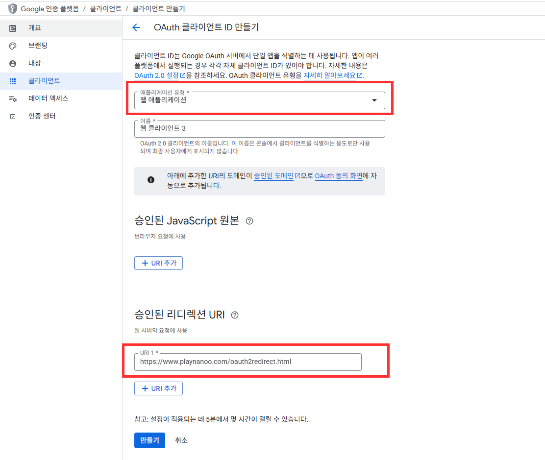 注册 Google 用户 OAuth 客户端 ID